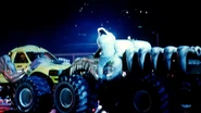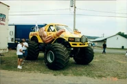 Hulkster was a custom Ford monster truck owned by Bigfoot 4x4 out of St. Louis, Missouri. It was themed after wrestler Hulk Hogan and was the first of several World Championship Wrestling-sponsored trucks to be campaigned by the team throughout the mid-to-late-1990's. The truck debuted for a monster truck sumo match with Dungeon of Doom at WCW's Halloween Havoc in October at Detroit's Cabo Hall. The name was run on various Bigfoot chassis under various drivers, with Bigfoot 15 serving as the base chassis and Eric Meagher serving as the primary driver during its span of competition. It ran in the 1996 Penda Points Series amd was replaced by Stinger towards the end of the season, after Hogan joined the recently-formed nWo on WCW in 1996. Meagher would drive this to a 2nd place finish in points. The truck would later be rebranded as Hollywood Hogan with black paint to match the new colors. The mold for the arms would later be reused for Straight Up Racing trucks including American Bad Ass/Muscle, Beast Mode, El Bandito and Tough Guy/Canadian Tough Guy.