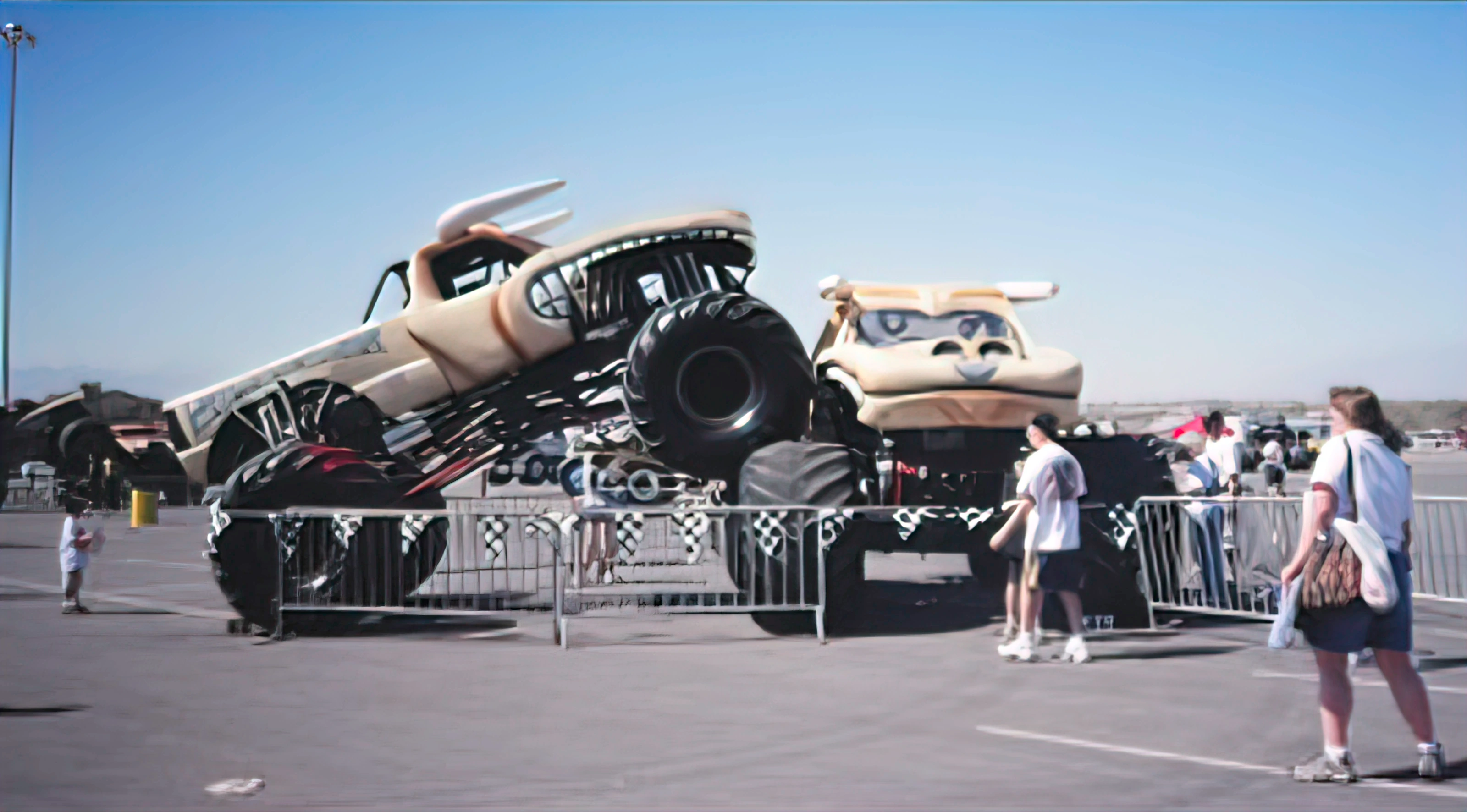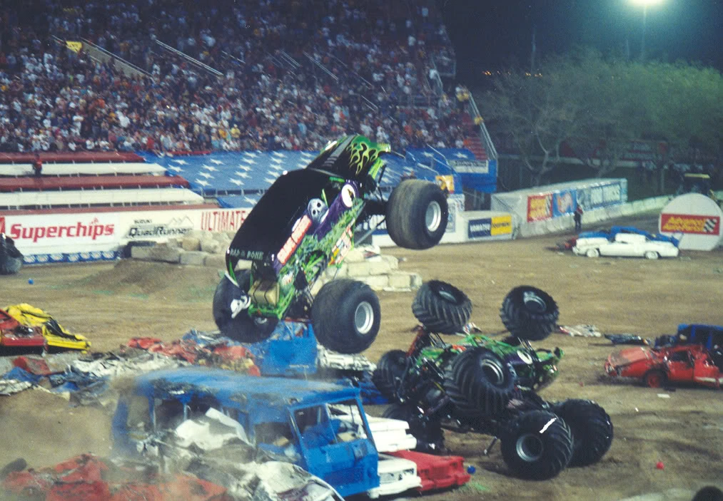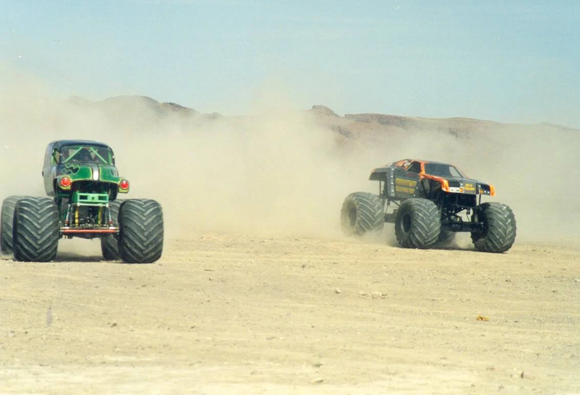 3 tandem freestyle performances were performed, one at a time. The first performance featured two Blue Thunder trucks, being driven by Tony Farrell and George Balhan. This was followed by two Maximum Destruction trucks, being driven by Tom Meents and Neil Elliott. The final performance featured 2 Grave Digger trucks, being driven by Charlie Pauken and Dennis Anderson..