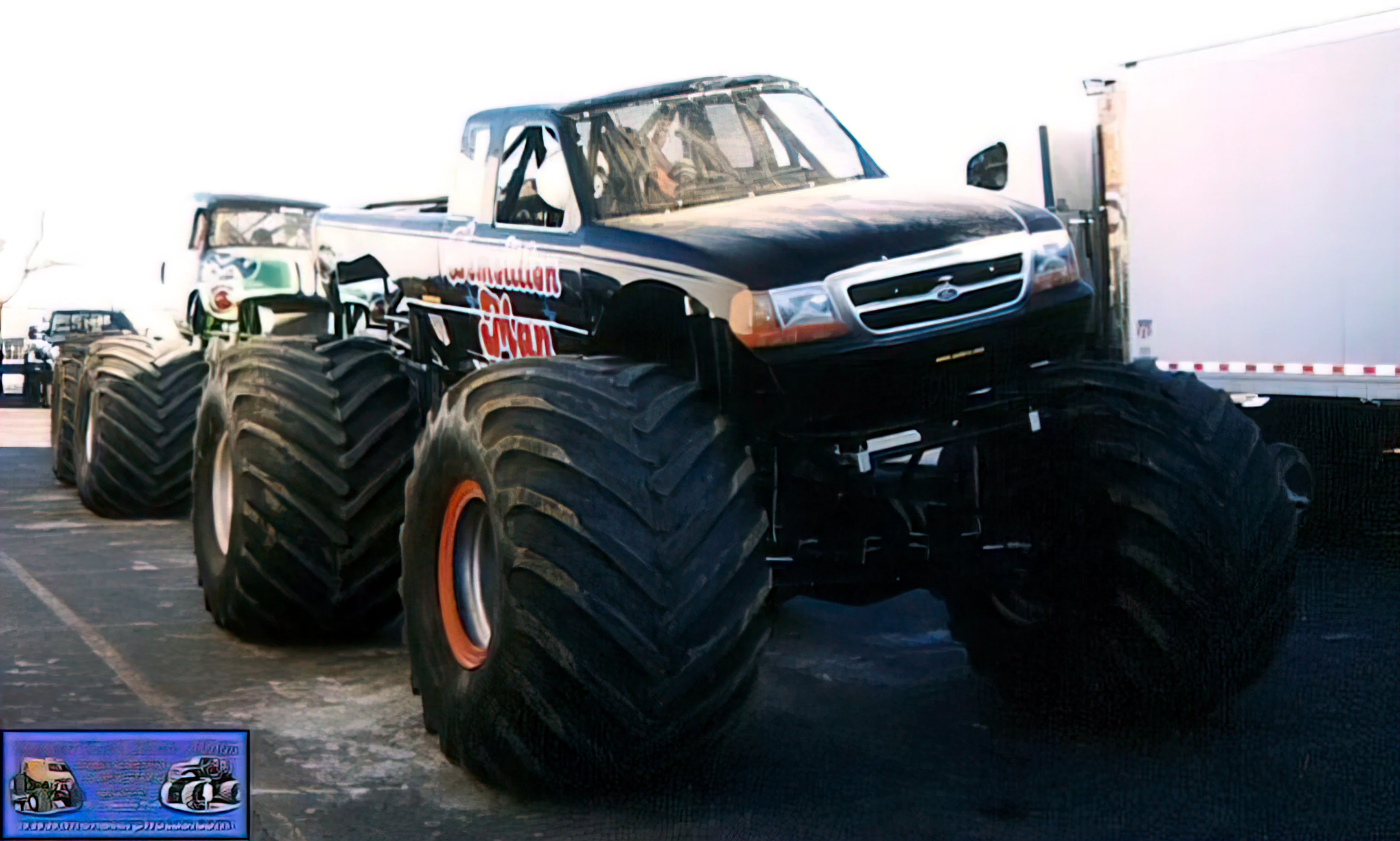 During the 2004 winter season, Tom Meents ran a special Maximum Destruction body that featured electricity instead of flames. However, the body was not placed on the truck until before racing began, instead sporting the regular body that Neil Elliott's truck would use for the group photo and the pit party.