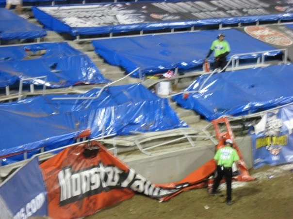 The damaged stands after the Captain's Curse crash.