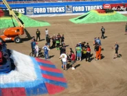 The two trucks that sponsored each of the two racing lanes would go against each other in racing, however, they would ironically be put in opposite lanes, with the Built Ford Tough sponsored Blue Thunder being in the Advance Auto Parts lane, and the Advance Auto Parts sponsored El Toro Loco being in the Ford Trucks lane.