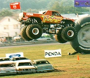 Rampage is a Dodge Ram monster truck owned by Triple B Motorsports. The truck was originally created by Bear Foot creator Fred Shafer in 1995 and driven by Ken Deppe and Todd Frolik on the Bear Foot 11. Richard Patterson bought the name and truck in 1997 after Fred’s retirement, before being sold to Paul Shafer Motorsports in 2002 and ran until 2008.