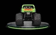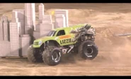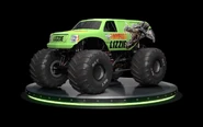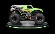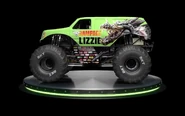 Lizzie was one of the three trucks that debuted at the Monster Jam World Finals 19 to sponsor the movie, Rampage. It was a green Cadillac, featuring the character of the same name, from Rampage. Just like the other two Rampage trucks, it was unveiled during the Friday pit party. It would later appear during Saturday's freestyle encore, and was driven by Alex Blackwell. Soldier Fortune & Soldier Fortune Black Ops also were in the encore & were used to control Ralph & Lizzie. For unknown reasons, the Soldier Fortune trucks didn't have the names on them.